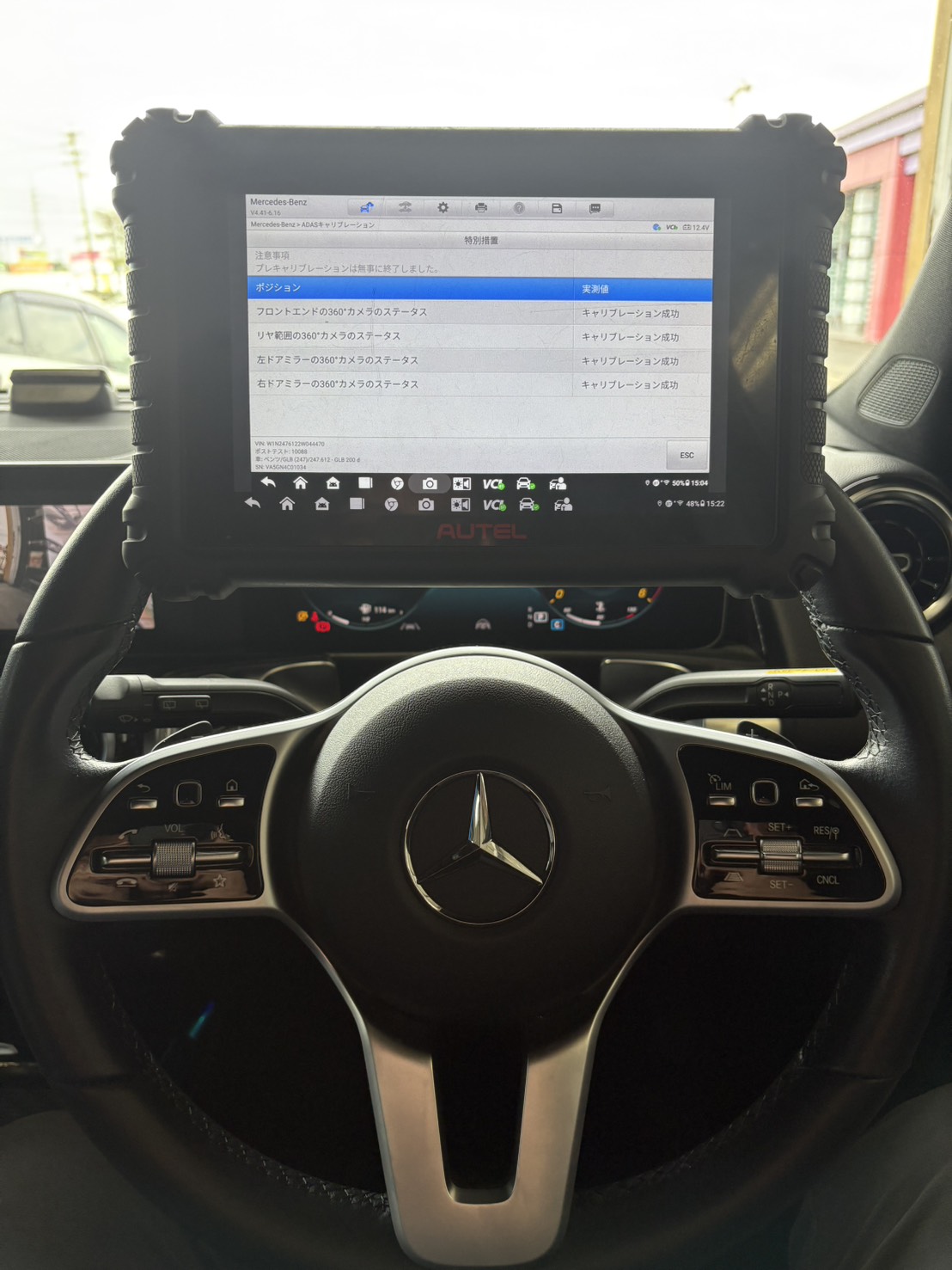 交換後、システムチェックを行い360度カメラ映像の正常動作を確認。さらに専用診断機でカメラエーミングを実施し、映像とセンサーの位置合わせを正確に調整しました。