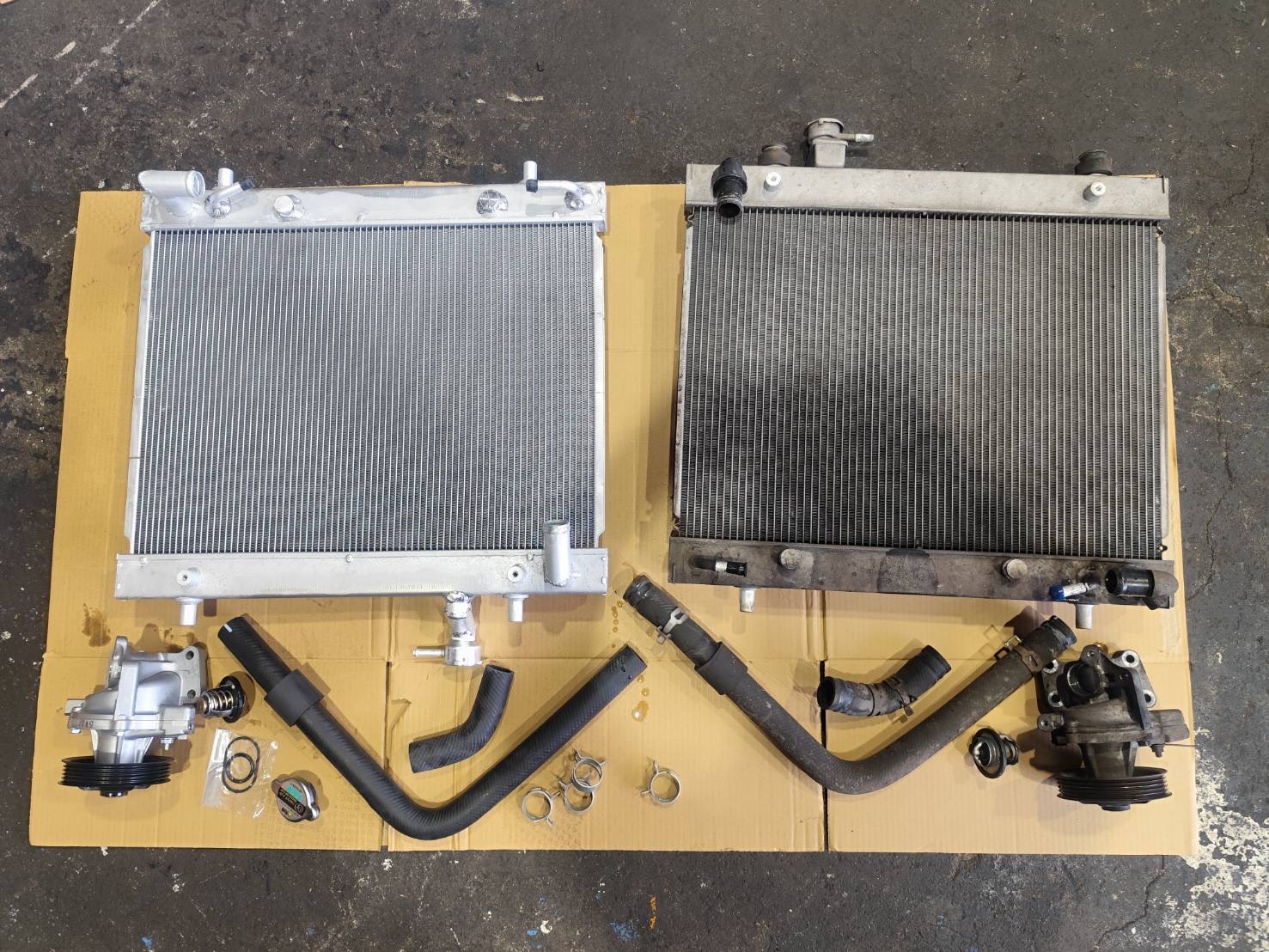 漏れが見つかったラジエターを新品に交換し、冷却効率を回復。