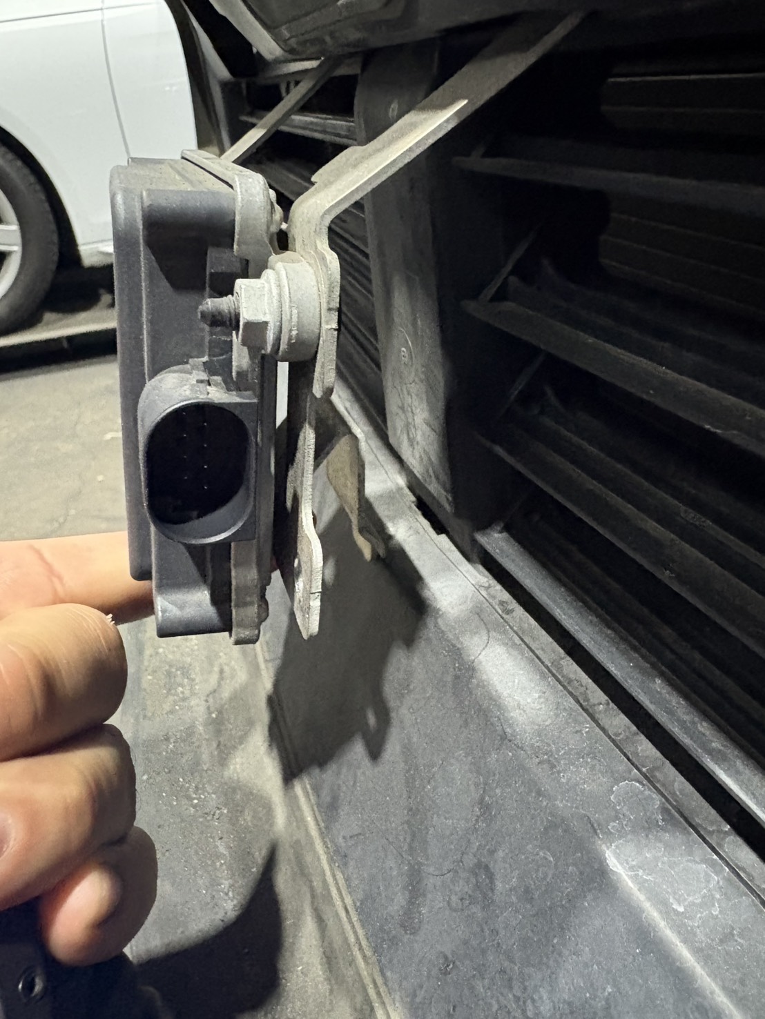 フロントレーダー本体の取り付け位置を再調整。角度や高さをメーカー規定値に合わせ、正確に作動するよう慎重に調整しました。