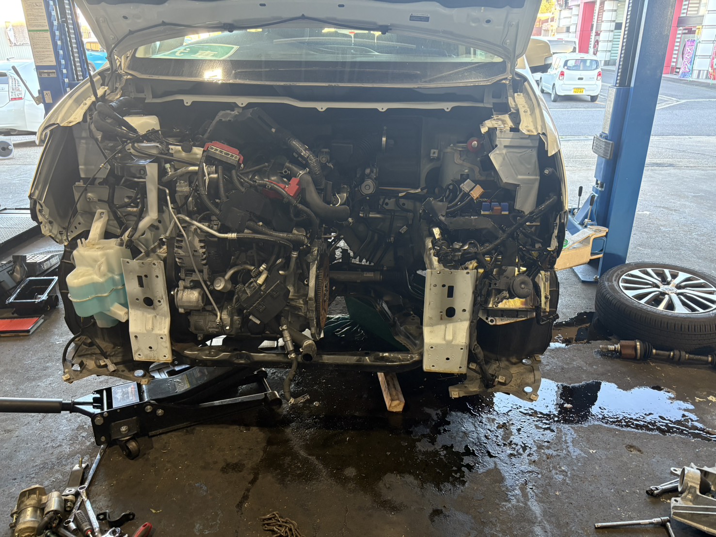 お客様から「ギヤチェンジができず、加速しない」とのご相談をいただきました。点検を行ったところ、CVT内部の異常が確認され、内部摩耗による油圧制御不良が発生していました。このままでは走行不能となるため、CVT本体の交換修理を実施する方針に決定しました。
