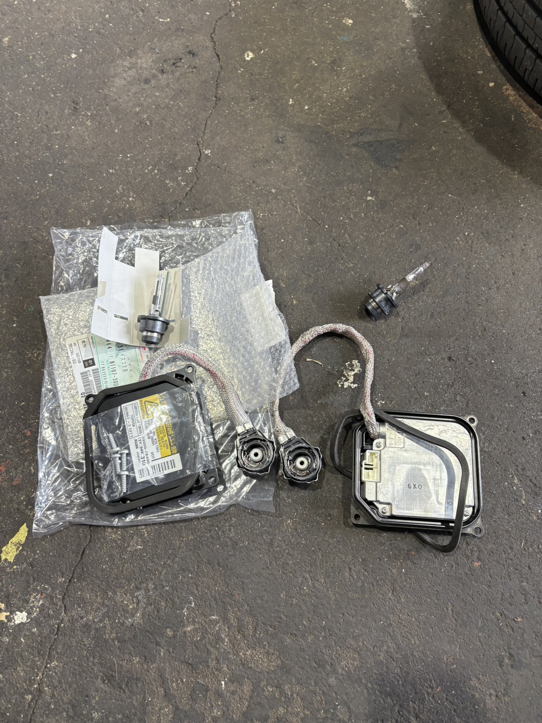 原因のひとつであるヘッドライトバルブを新品に交換しました。HID特有の電圧負荷変動による寿命劣化が確認でき、点灯の安定性改善を目的とした交換です。