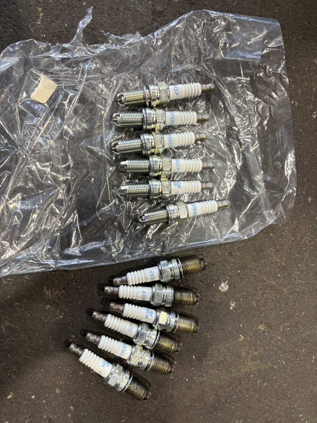 各シリンダーのスパークプラグを丁寧に取り外し、電極の消耗状態やカーボン付着の有無を確認。エンジン内部への異物混入に注意しながら作業を進めました。