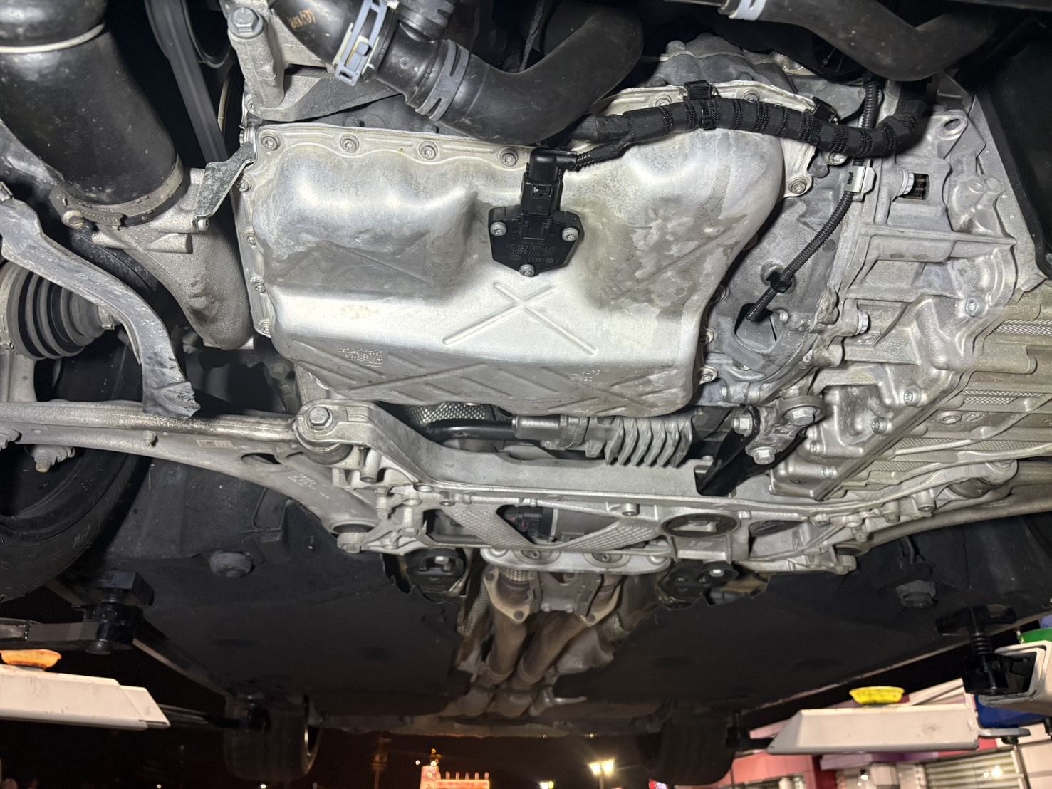 知多市のお客様より、アウディ TTにてエンジンオイルパンからのオイル漏れがあるとのことでご相談いただきました。点検を行ったところ、オイルパン部のシール不良が原因と判明しました。