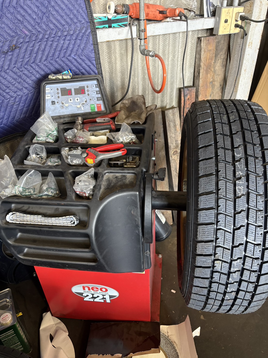 季節に合わせてスタッドレスタイヤへ交換を実施。残溝やゴムの状態を確認しながら、安全性を重視して丁寧に作業を行いました。