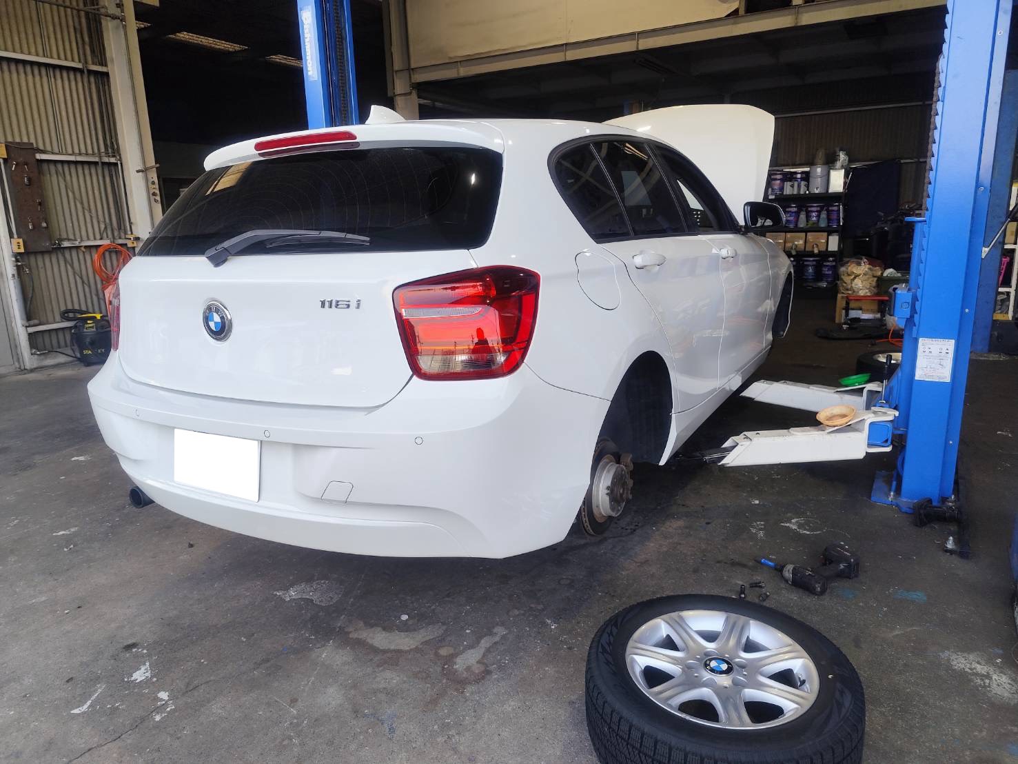 常滑市のお客様より、BMW 116iの車検および各種メンテナンス作業のご依頼をいただきました。